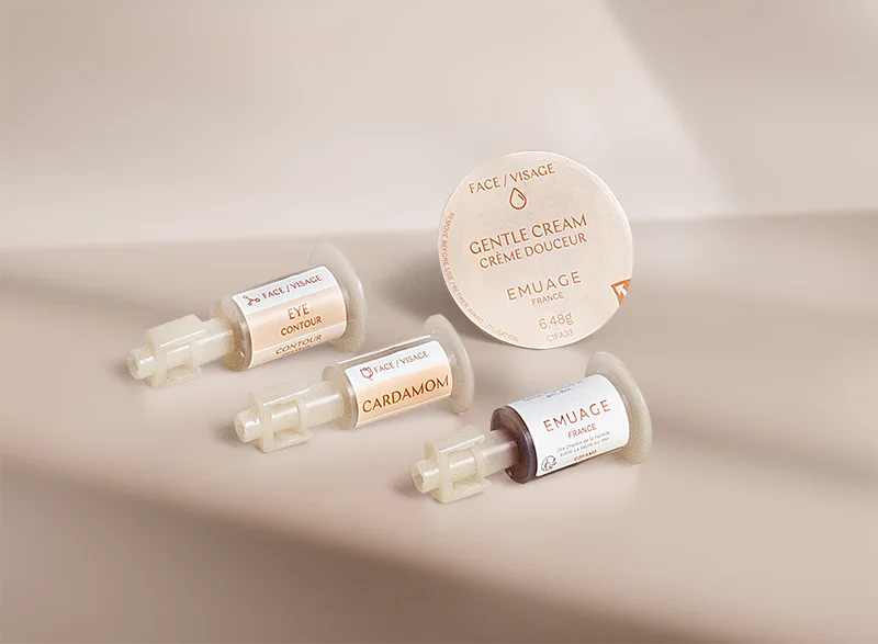 Il sistema Emuage è semplice e intuitivo: tu dovrai solo scegliere la combinazione di capsule perfetta per le esigenze della tua cliente – una per la texture, una o due per i principi attivi e, se desiderato, una per la fragranza – ed inserirle nella macchina.